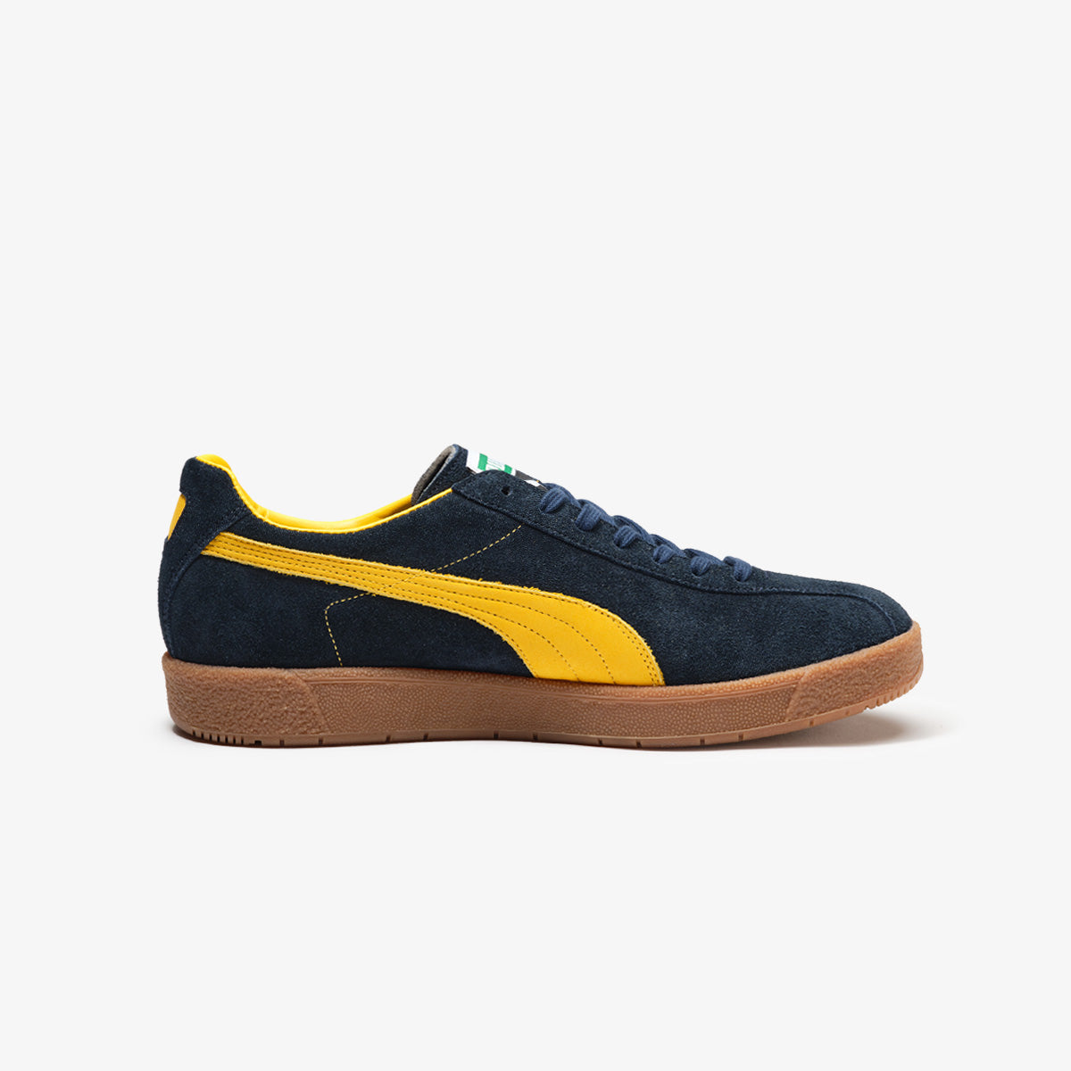 当時、西ドイツで生産されていた古き良きオリジナルカラーをサンプリングしている。ブルー/イエローといった配色は、PUMAは勿論のことながら他ブランドでも多くのレトロシューズのアーカイブモデルが存在し、70年代を代表する由緒あるカラーリングのひとつである。これだけでもヴィンテージ感の漂うマニア垂涎なルックスと言える。