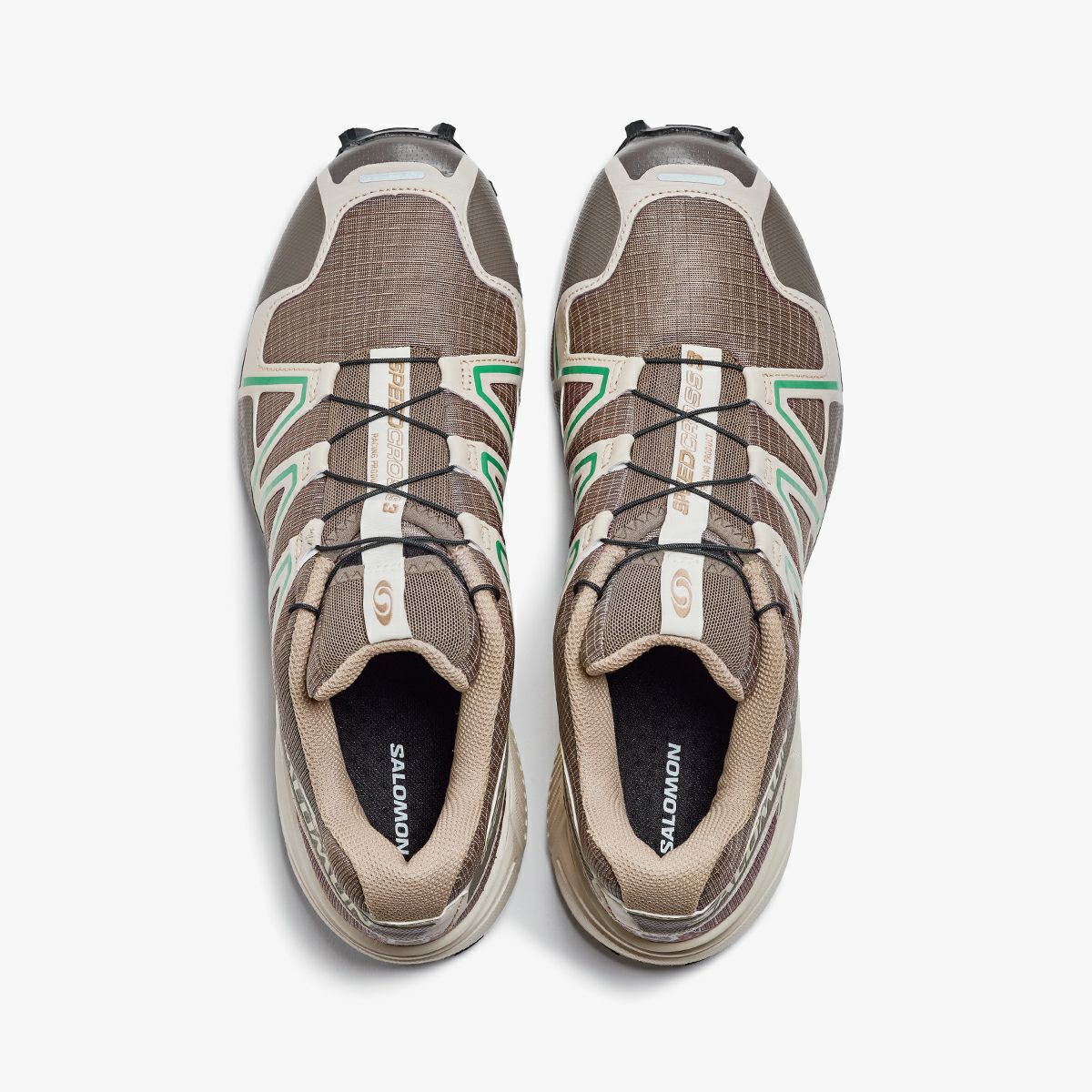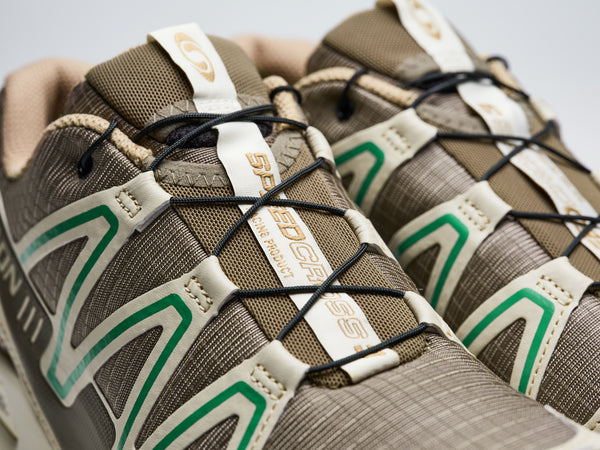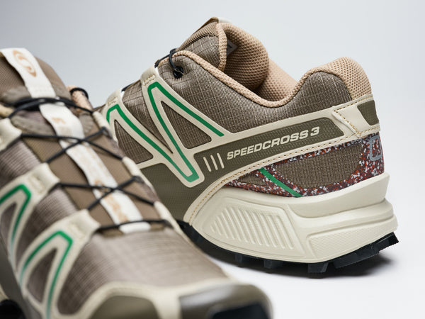 日本のスニーカー文化を原宿から世界へ発信するプレミアム・スニーカーブティック<KICKS LAB.>で発売されるエクスクルーシブモデル<SPEEDCROSS 3 MINDFUL>は、アースカラーを彷彿とさせる淡いブラウンをベースに鮮やかなグリーンを差し込み、自然の魅力を存分に表現。
