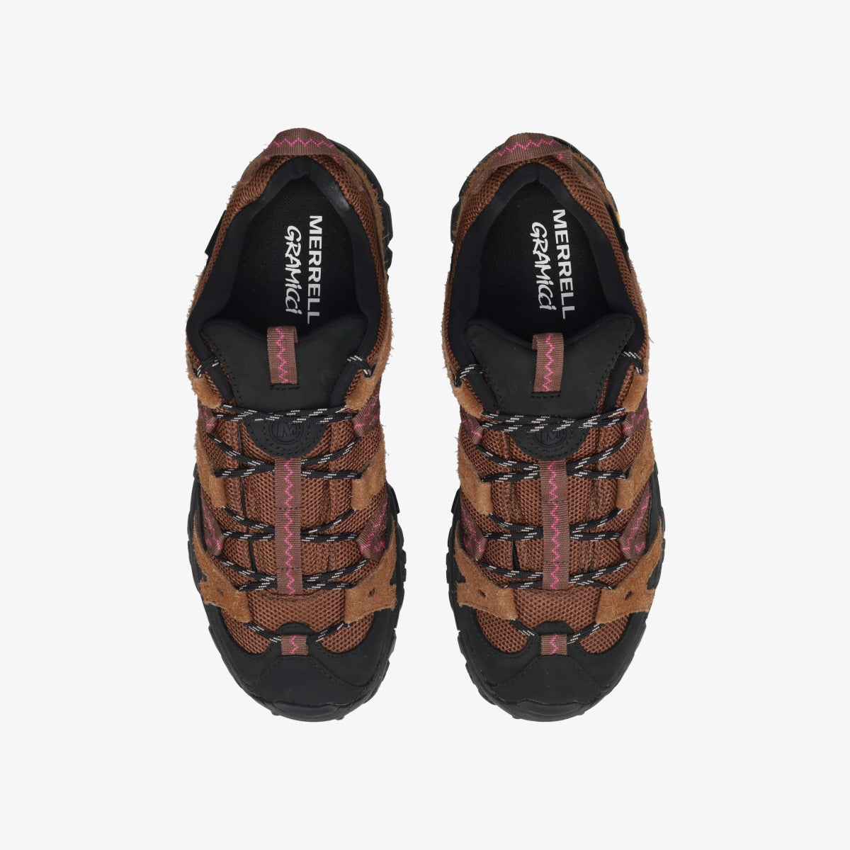 MERRELL(1981年創業)とGRAMICCI(1982年創業)は、わずか1年違いで誕生し、ともにアウトドア業界に多大な影響を与えてきたブランド。今回初めてのコラボレーションシューズとして<MOAB 2 SREN X GRAMICCI>を発売する。