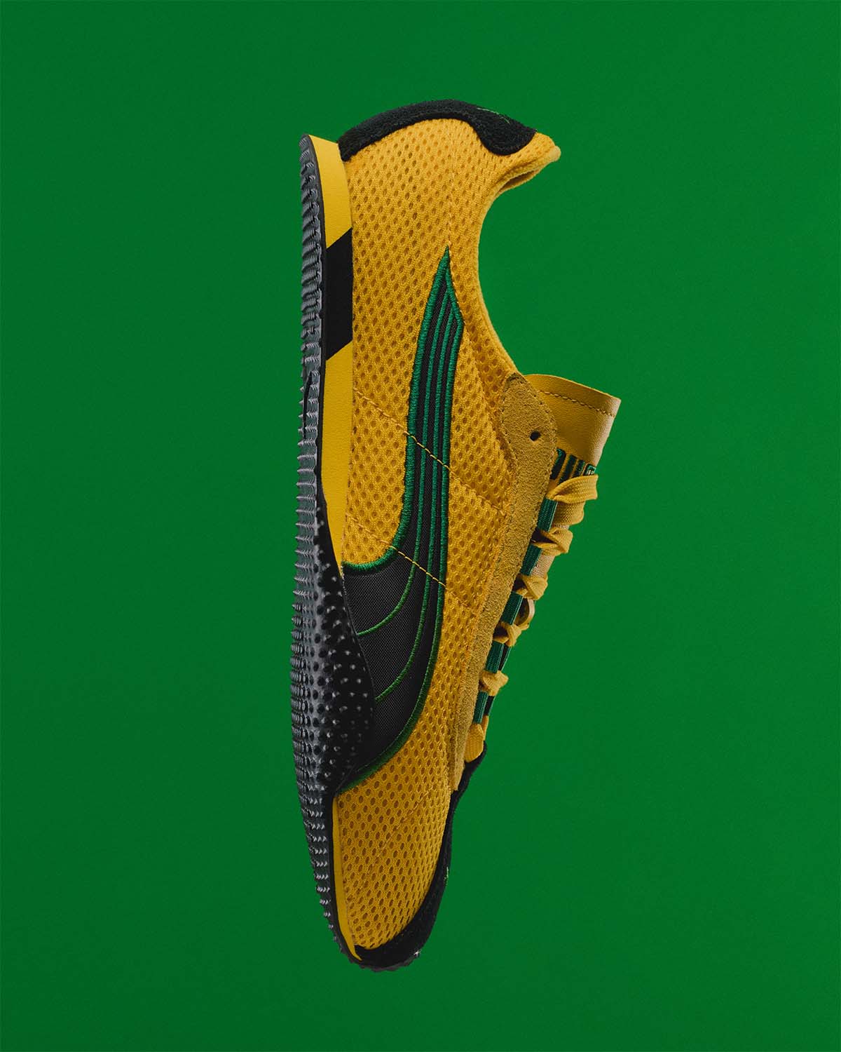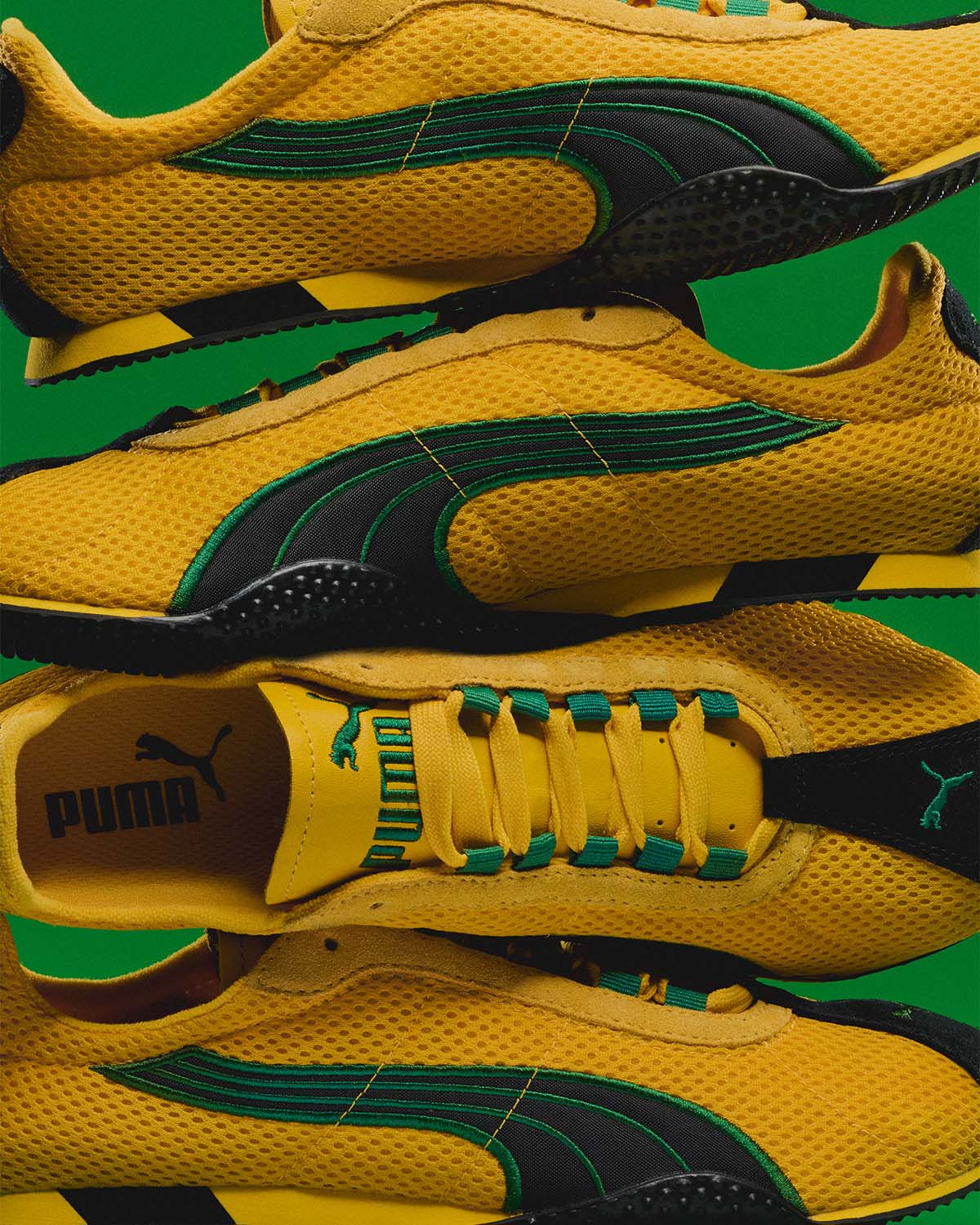 H-STREETはスプリントの伝統とストリートのDNAを融合させ誕生した、時代を超えたアイコンです。今回新たに登場するのは、2003年にリリースされた伝説のカラーウェイ、ブラック/イエロー/グリーンの復刻モデルで、PUMAが長年スポンサーを務めてきたジャマイカ陸上競技チームとの歴史へのオマージュでもあります。軽量なアッパー、ロープロファイルのシルエット、そしてアイコニックなストリートの伝統を融合させたこのコレクションは、ジャマイカのスピードや力強さ、そしてゆるぎないアティチュードへのオマージュです。