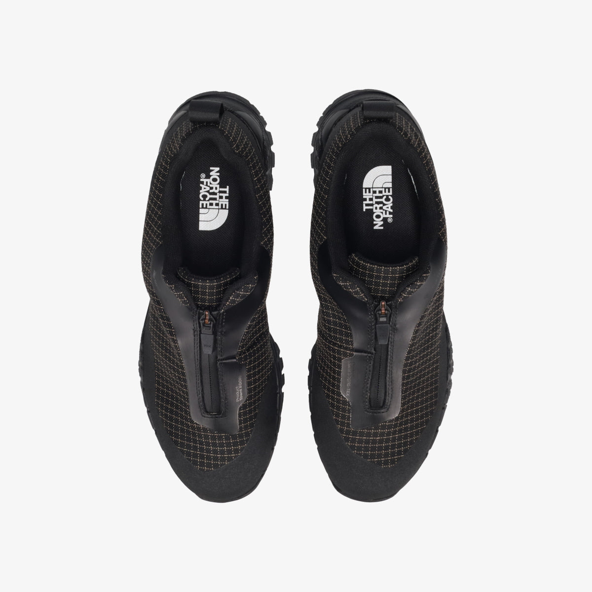 つま先まわりにはラバーマッドガードを配置して、石や岩などの摩擦を軽減。フロント止水ファスナー仕様で、スムーズに着脱できます。