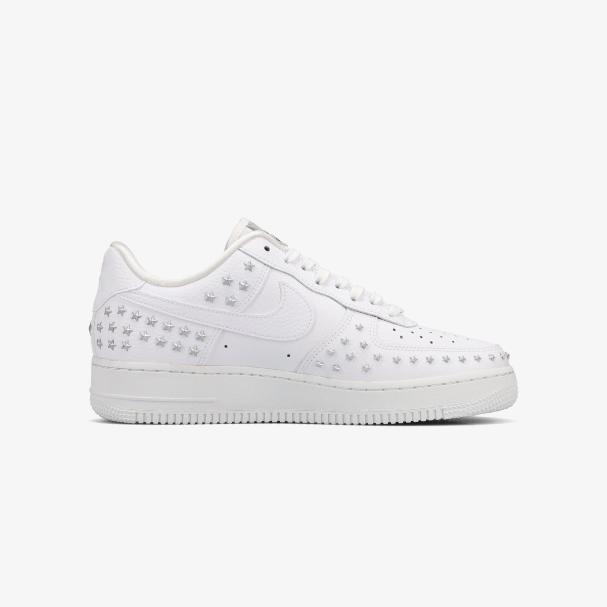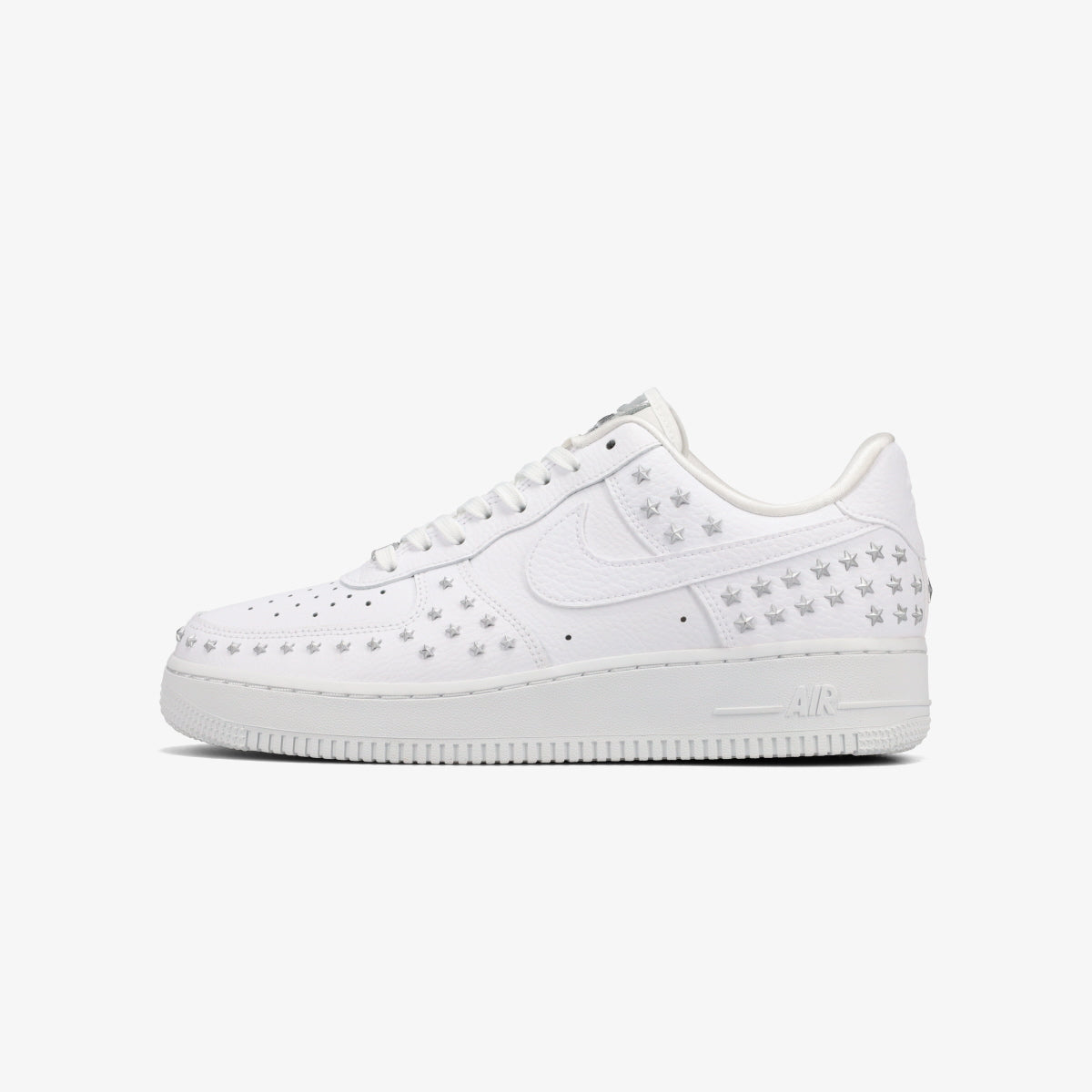 ホワイトレザーのキャンバスに、メタリックなスタースタッズがリズミカルに配され一見シンプルながら目を引くデザインに。