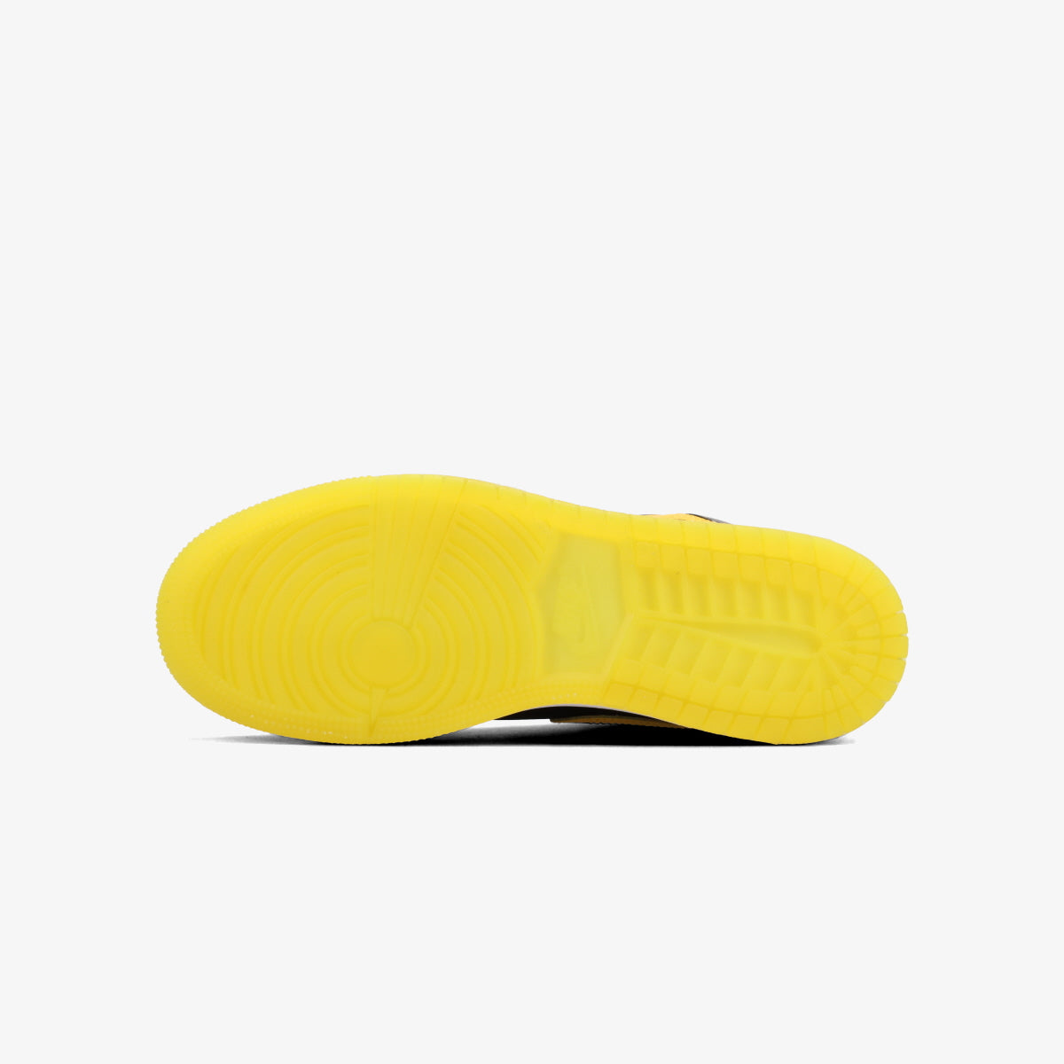 トゥ、アイステイ、サイド、ヒールなどにブラックの素材をレイヤードし、鮮やかなイエローに色の対比を際立たせ、足元に構造的な美しさを添えています。