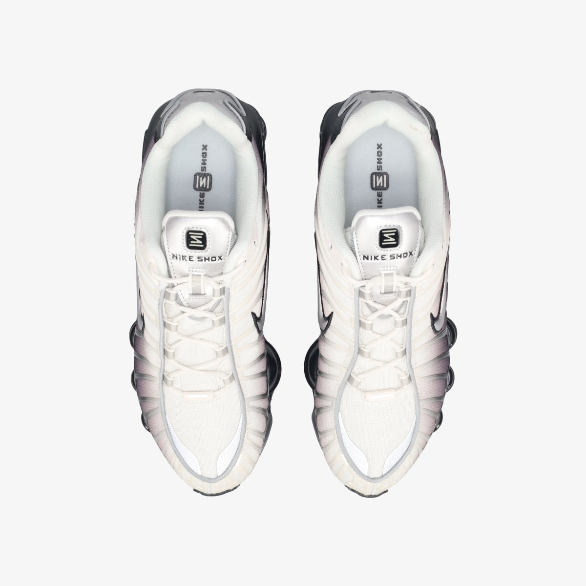 スウッシュやヒールタブに施されたシルバーは、メカニカルな輝きで足元にアクセントを添えます。