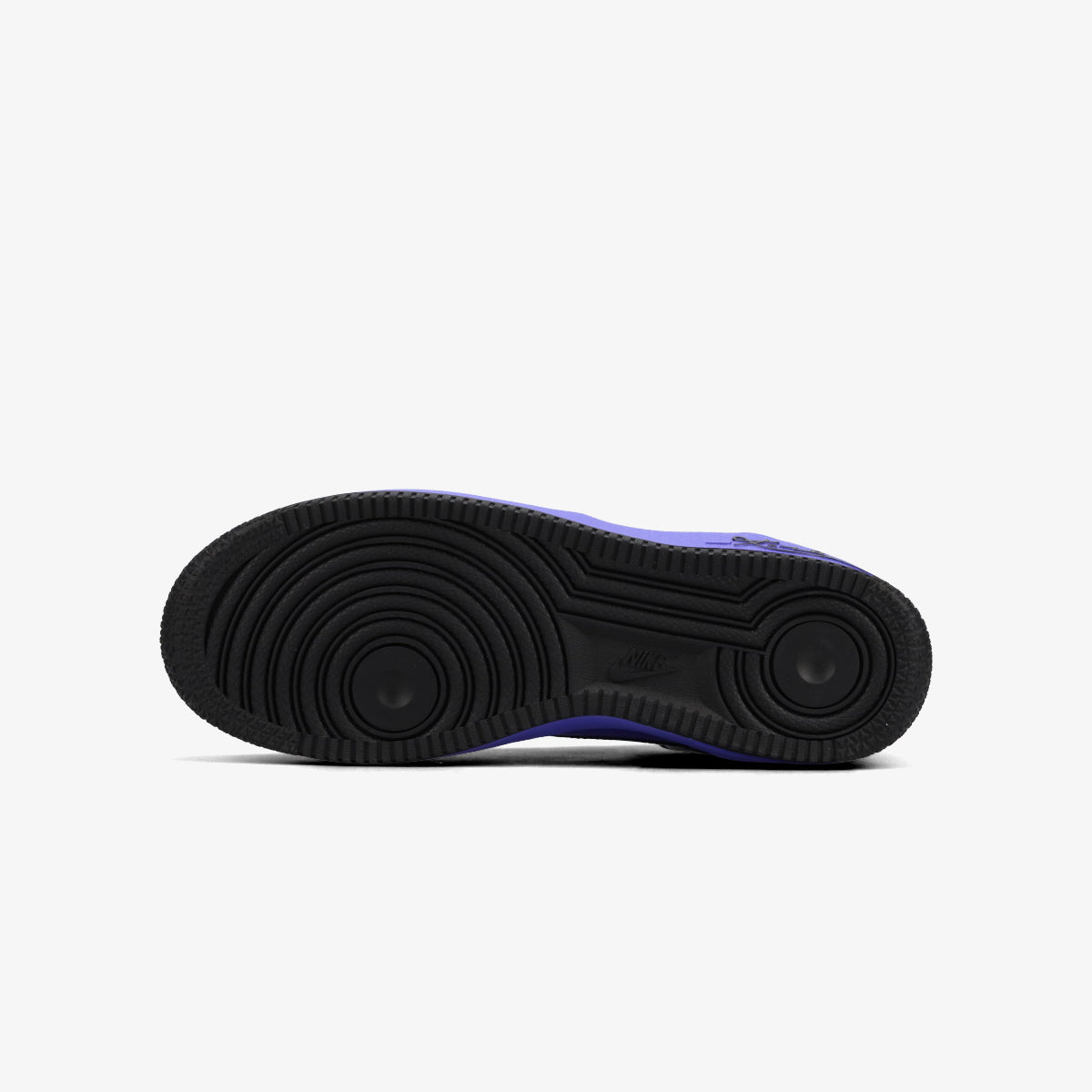 ボディ全体にバイオレットをまとい、ブラックのスウッシュ、ヒール、ソールが輪郭と力強さを強調。