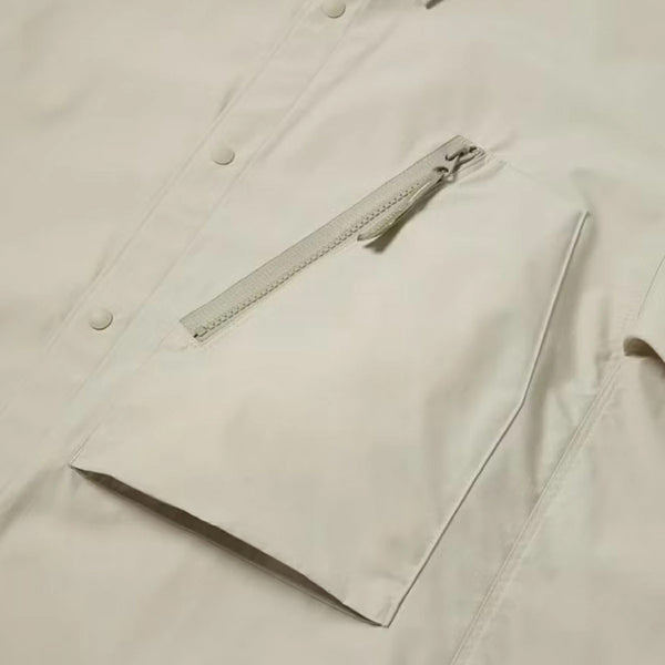 Storage capacity is improved by placing a gusseted zipper patch pocket on the left chest.