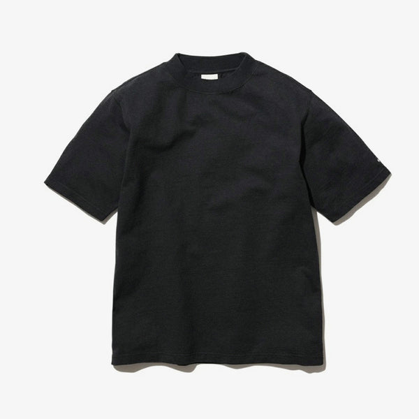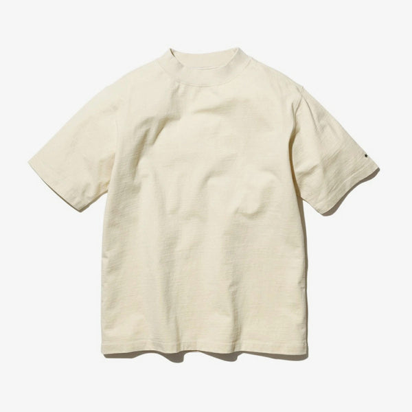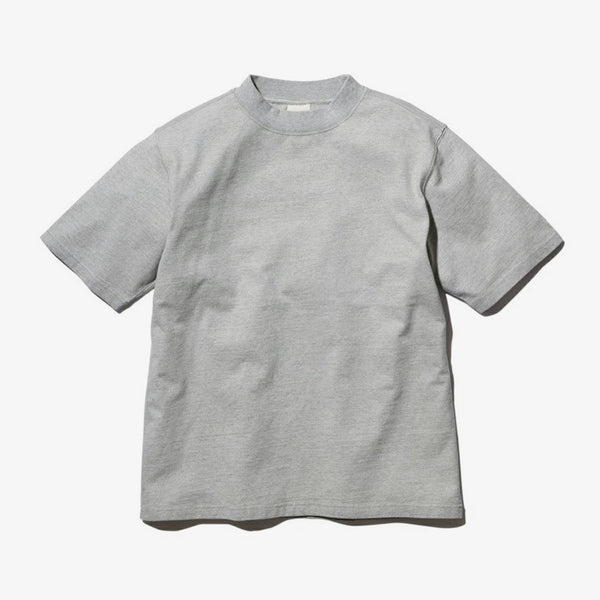 This T-shirt combines a basic body with a mock neck, giving it a simple yet modern look.