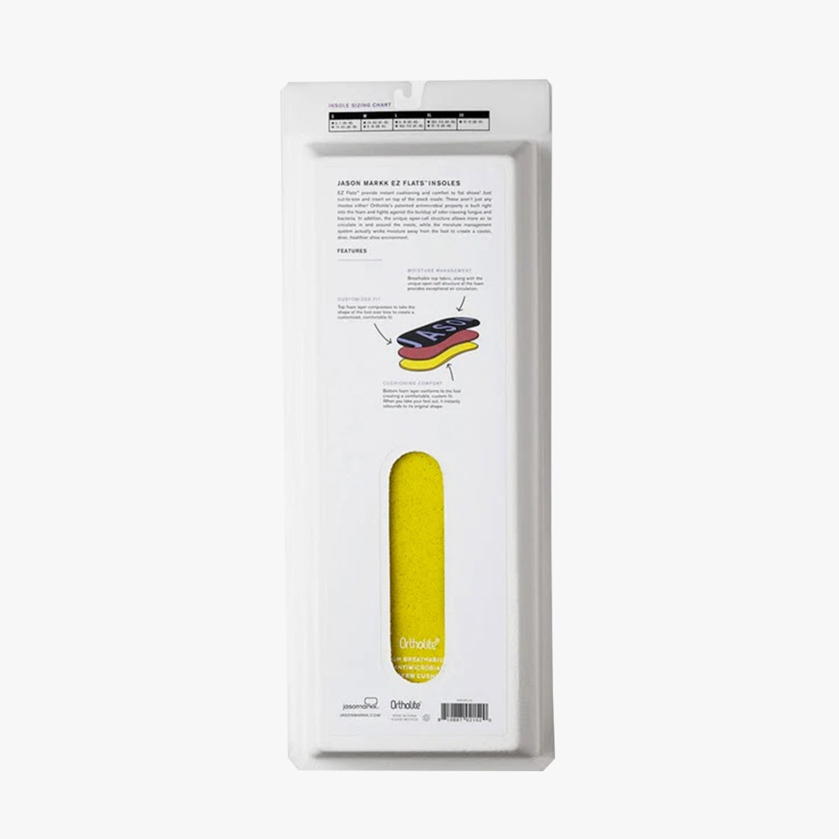 ジェイソンマークのEZフラットはソールのフラットなシューズに一瞬にしてクッション性と快適性を提供します!サイズに合わせてカットし、既存の純正インソールの上に挿入するだけです。これらはただのインソールではありません! Ortholiteの特許取得済みの抗菌特性がフォームに組み込まれており、インソール内および周辺のニオイの原因となるカビやバクテリアの増殖を防ぎ、湿気を管理するシステムが実際に足から水分を逃がし、より涼しく乾燥した健康的なシューズ環境を作り出します。