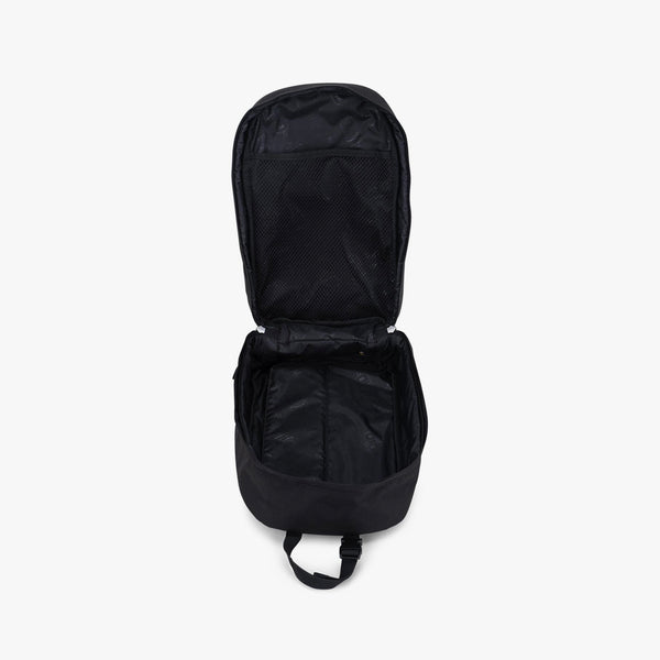 더블 지퍼로 개구부가 크게 열리므로 신발 출입도 부드럽게. 메인 컴파트먼트는 중앙에 칸막이가 붙어 있으므로, 안에서 신발이 움직이기 어렵고 더러워지거나 상처 입히는 일도 막습니다.
