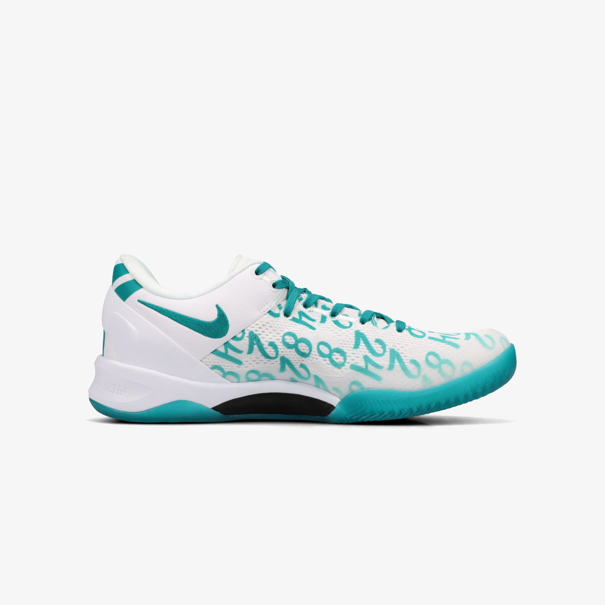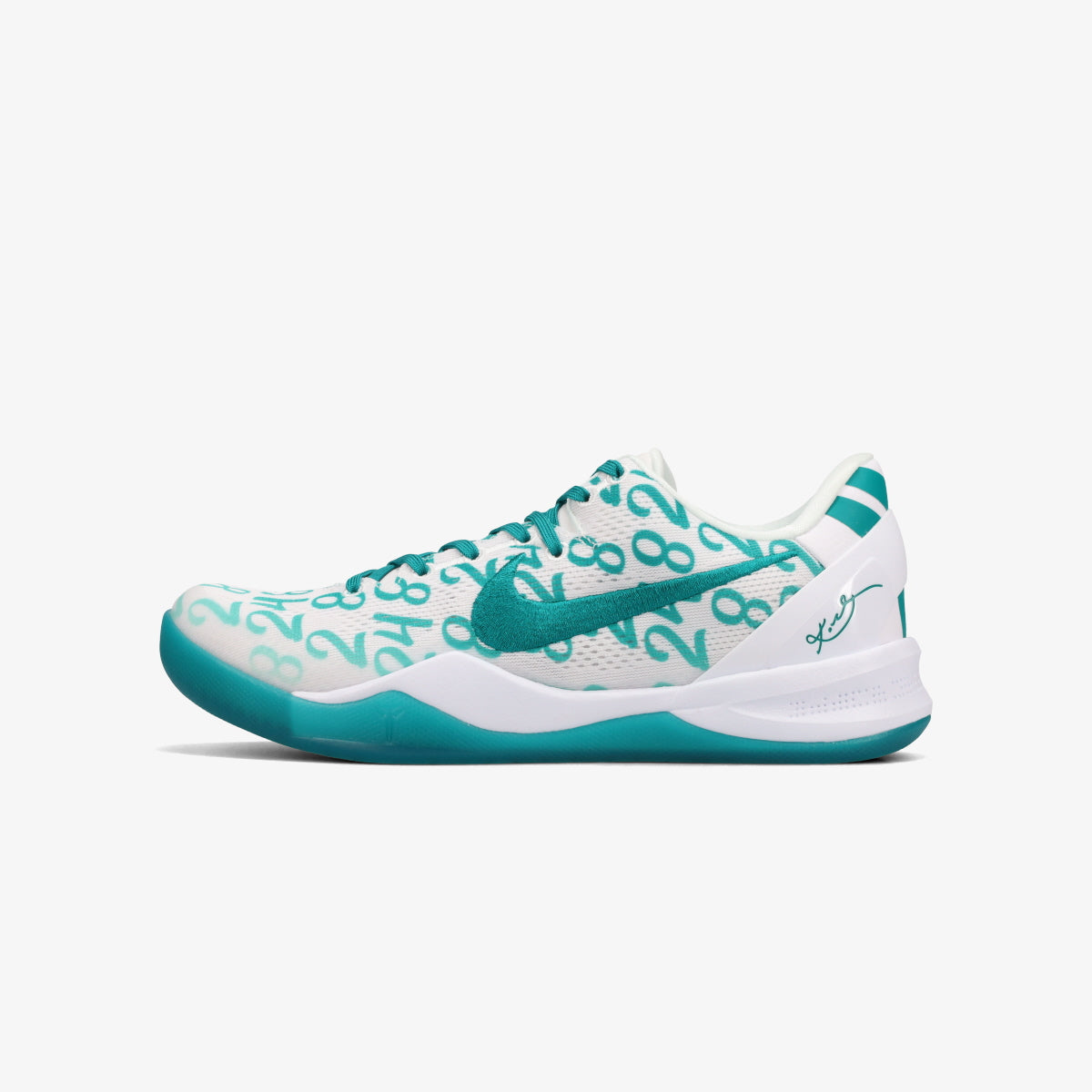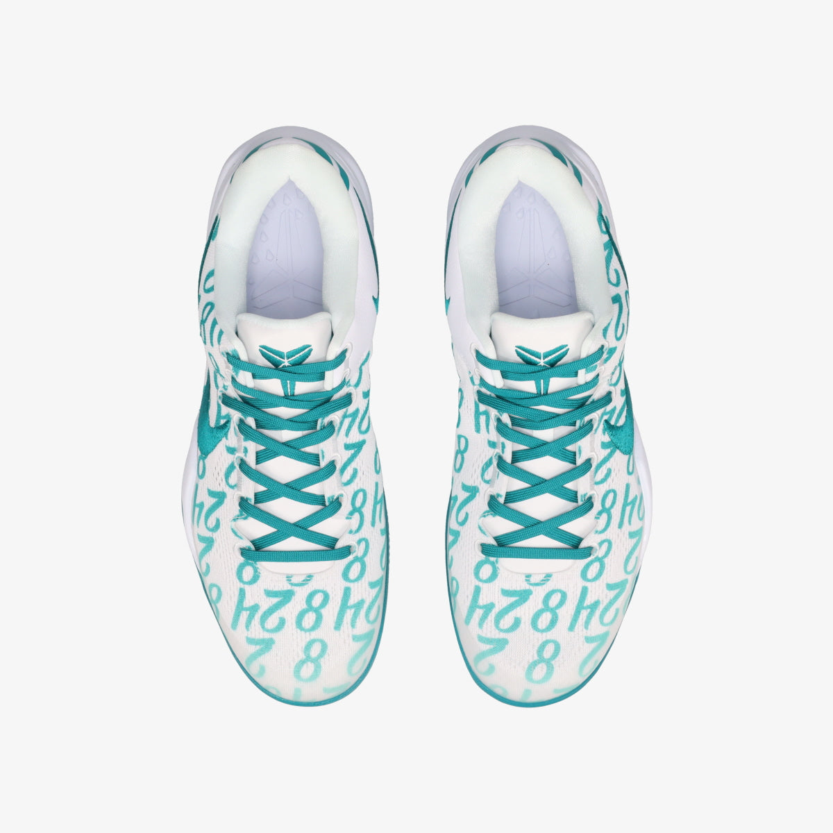 본작은, 어퍼 전체에 코비가 짊어진 2개의 등번호 「8」과 「24」를 디자인. 【RADIANT EMERALD】의 컬러를 악센트에, 아웃 구두창에는 시원한 그린의 클리어 러버를 배치. 시리즈 굴지의 화려한 실루엣을 두드러지고 있다.