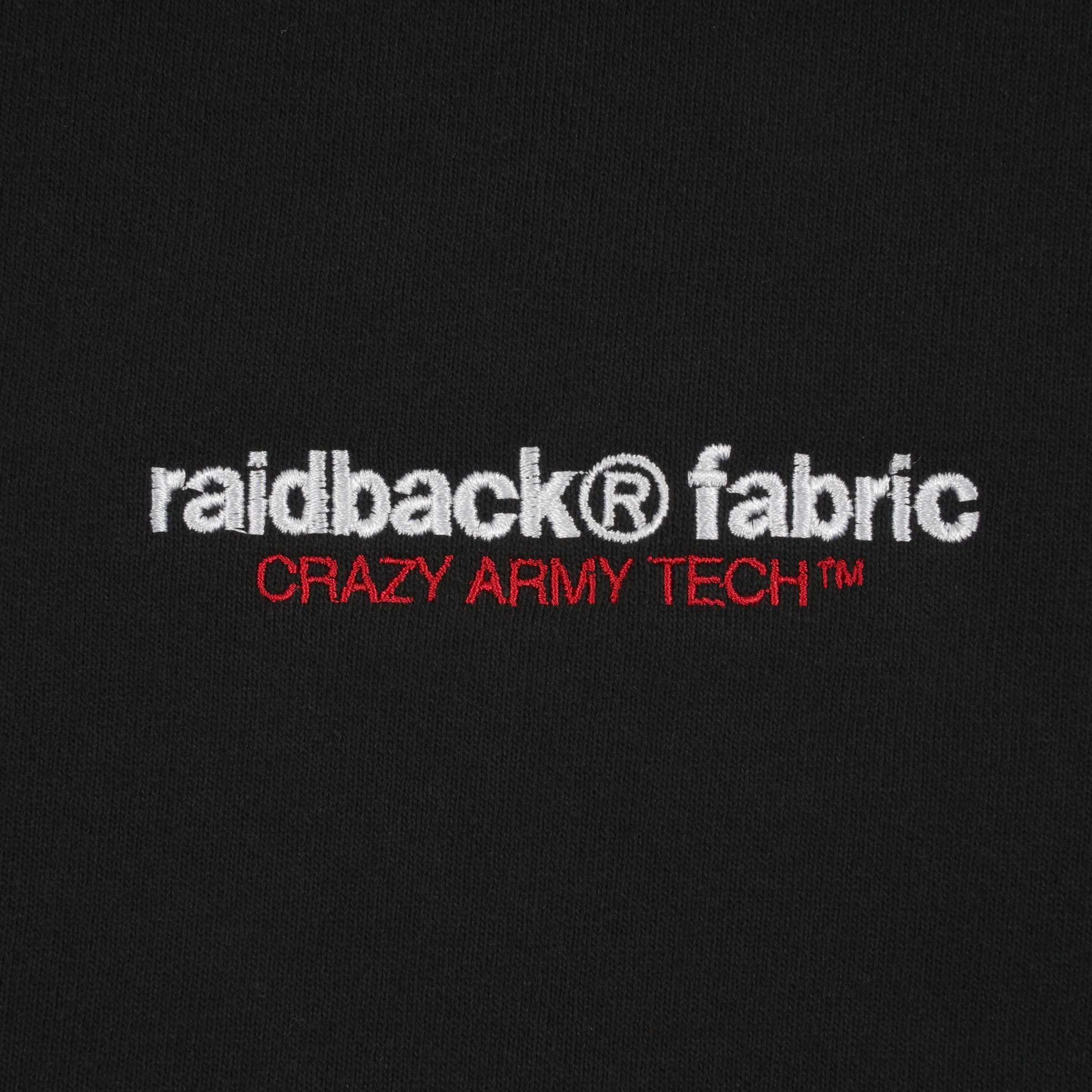 <raidback®︎fabric CRAZY ARMY TECH>의 로고 자수가 가슴 센터에 베풀어지고 있습니다.