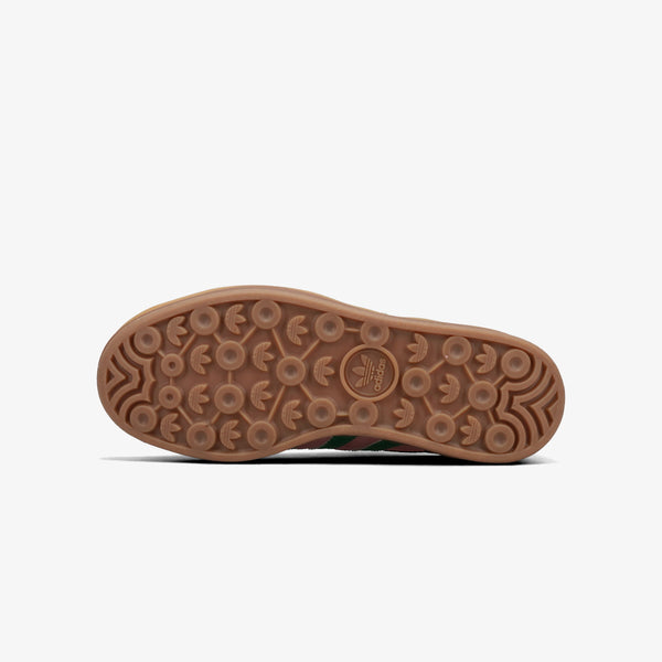 メタリックゴールドの「Gazelle」のレタリングは、アディダスのヘリテージの証しです。
