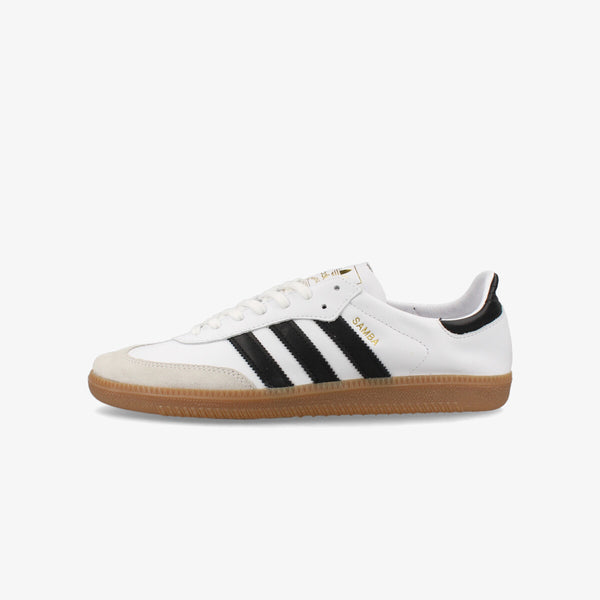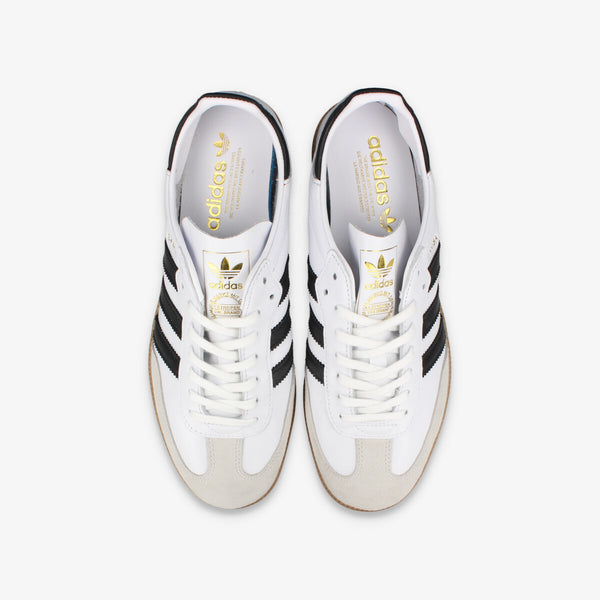축구 슈즈로서 데뷔해, 지금 스트리트웨어의 불후의 명작이 된【SAMBA】의 복각 모델. 고급 가죽 어퍼에 스웨이드 오버레이를 배치하고, 쓰리 스트라이프스의 상부에 골드 포일로 [Samba]의 문자를 다룬 1 다리.