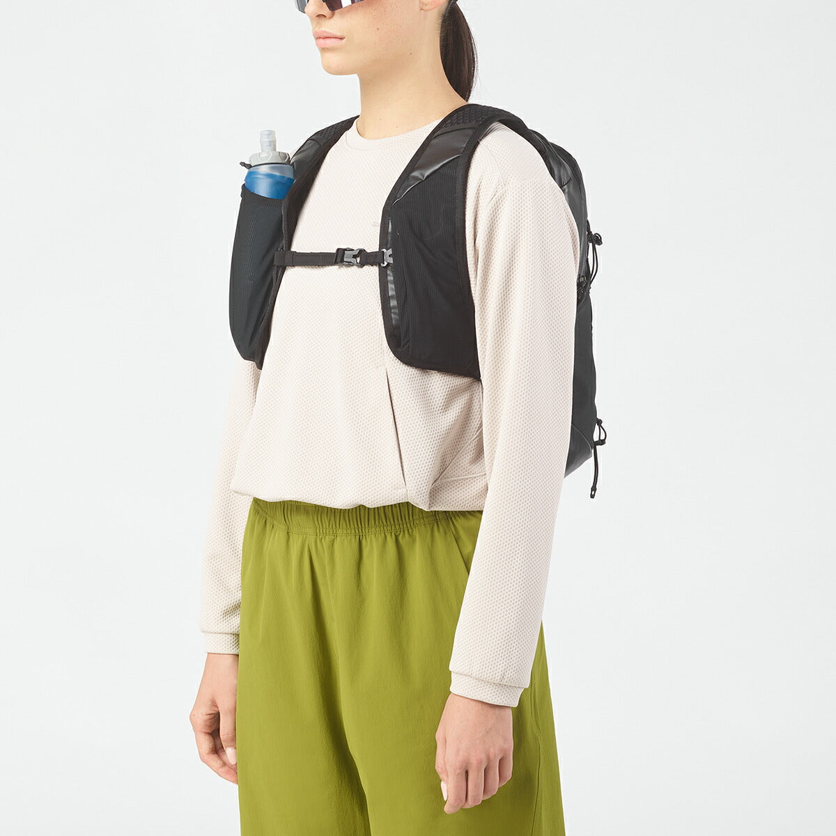 新しいハーネスポケットと 500ml ソフトフラスク(付属)に加え、収納力を高め、バックパネルを改良したこのオールインワン 15L バックバッグなら、ペースダウンの心配もありません。