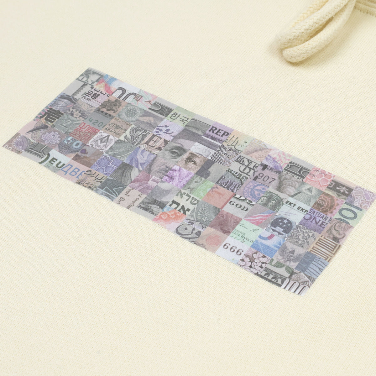 こちらの商品は、様々な国の紙幣を分解し新たなピクセルカモフラージュを作成したメッセージ性の高いアイテム。