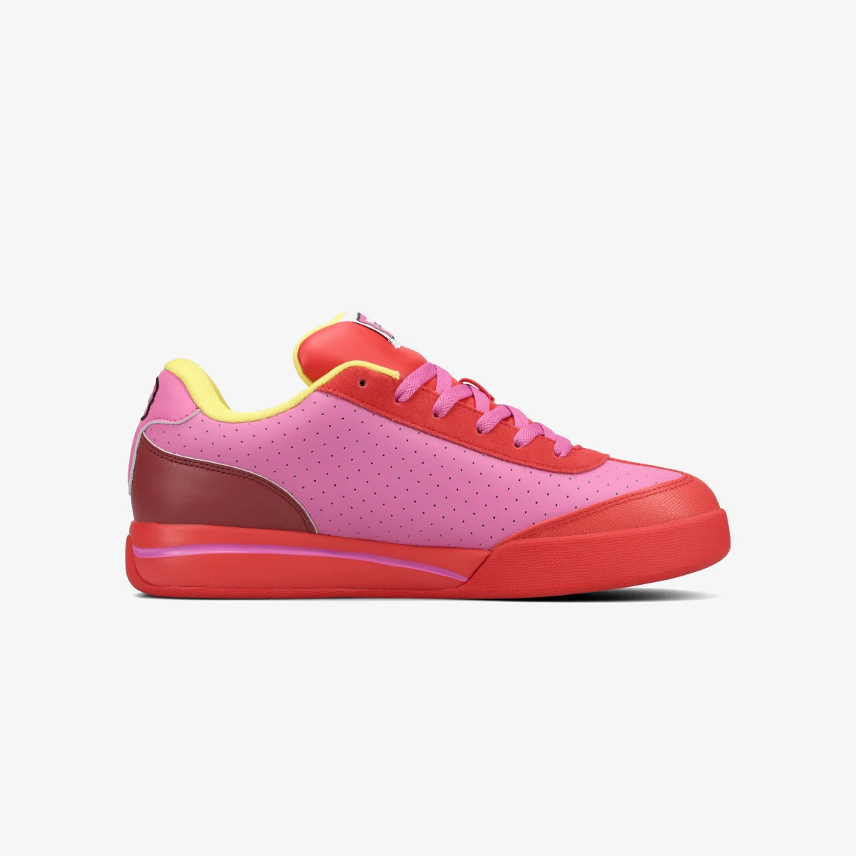 鮮やかな“PINK LEMONADE”カラーのフルスエードアッパーには、象徴的な「Cones & Bones」ロゴがヒールサイドに刻印。