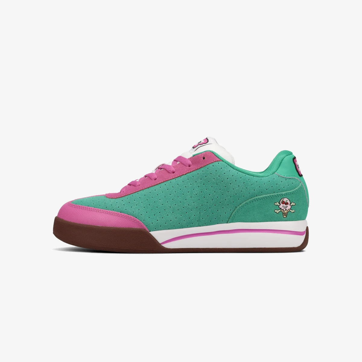 鮮やかな“WATERMELON”カラーのフルスエードアッパーには、象徴的な「Cones & Bones」ロゴがヒールサイドに刻印。