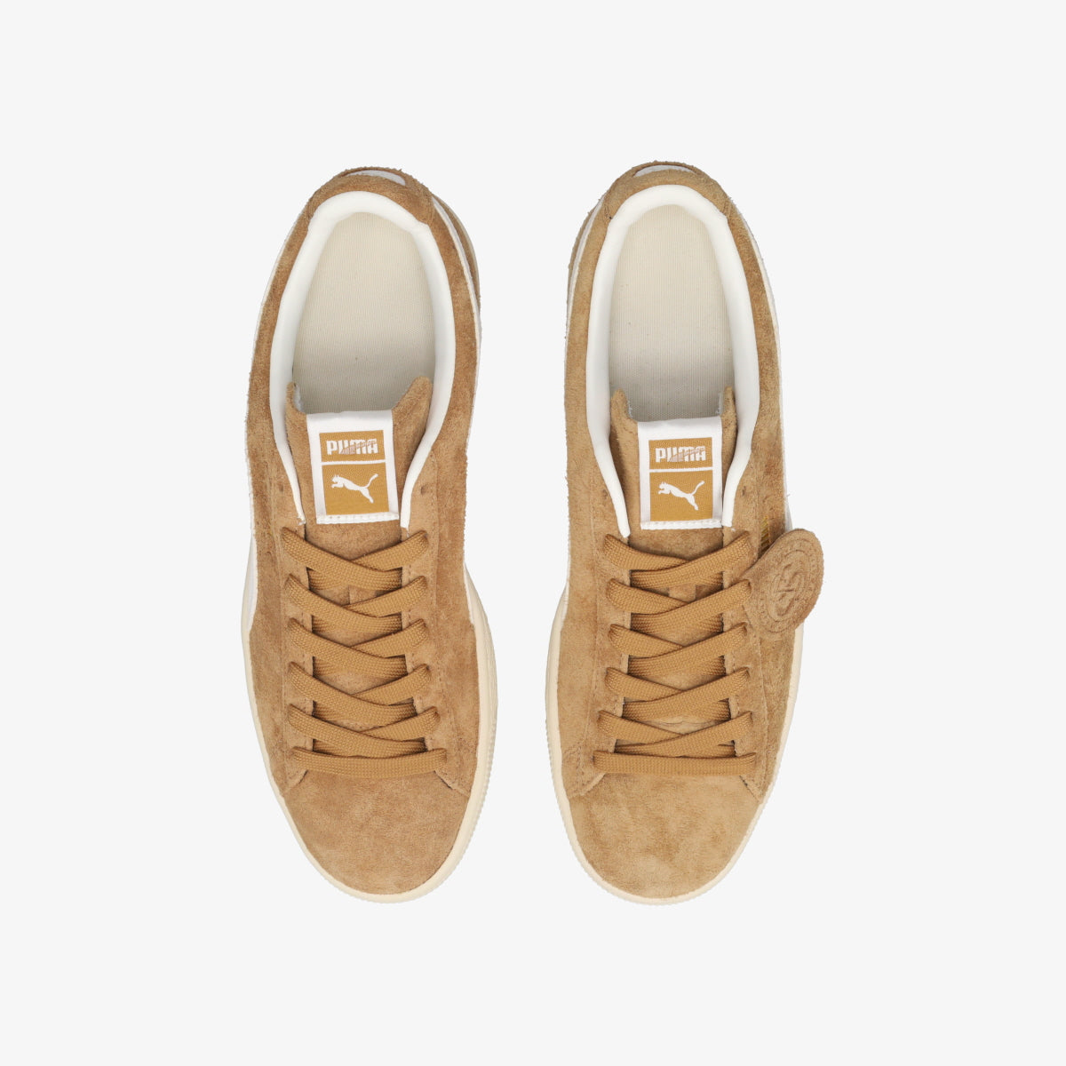 今回登場するのは、1825年創業の英国のタンナー(革製造業者)Charles F. Stead(チャールズ・F・ステッド)による高品質なレザーを使用したSUEDEの第二弾。オリジナルのディテールを残しつつ、極限までシンプルかつ洗練されたスタイルに仕上げられ、3つのエレガントで鮮やかなカラーを展開する。なかでもオレンジグロウは、SUEDEの原型となるCLYDEを生み出した伝説的なNBAプレイヤー、ウォルト"クライド"フレイジャー Jr.が所属したニューヨーク・ニックスのチームカラーを彷彿とさせる。