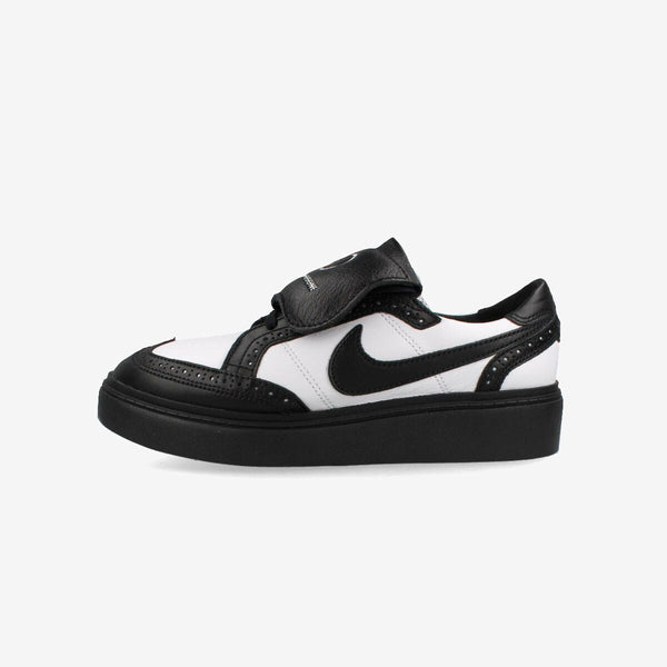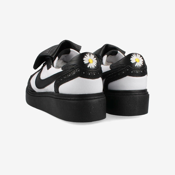 G-DRAGON自身のインスタグラム上でティーザーされた。「KWONDO1(クォンドー1)」と命名された今作は、スウッシュをウイングチップに見立て、ブローグ(模様穴)を施したドレスシューズのようなスタイル。シュータンのカバーには、"PEACEMINUSONE"のロゴを、ヒールにはブランドを象徴するデイジーの花を配置。さらにアウトソールにも同様にデイジーをデザインしております。