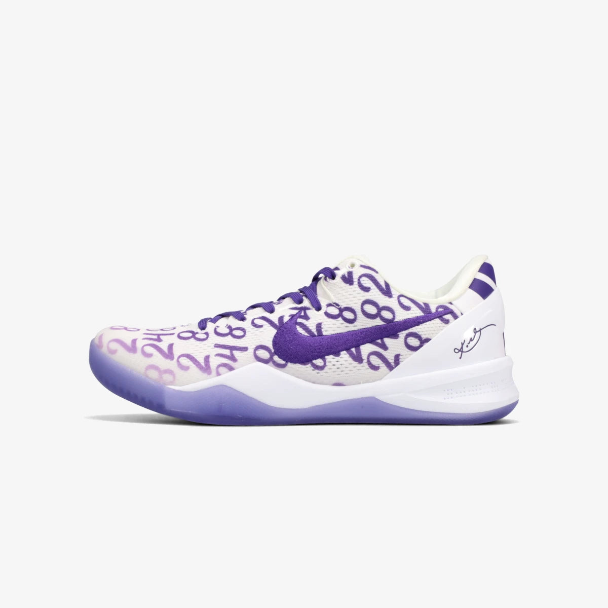 本作は、カラーリングにコービーの現役時代の姿をイメージし、パープルがアクセントに使われている。そしてアッパーには背番号「8」と「24」に加え、コービーと娘のジアナが着用した「2」を散りばめた。