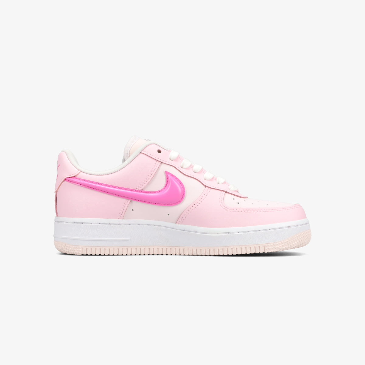 スウッシュやアクセントロゴは、やや濃いめのピンクで、アウトソールの縁部分には、パステルトーンでほんのりくすみが入った柔らかさが魅力のピンクを採用。