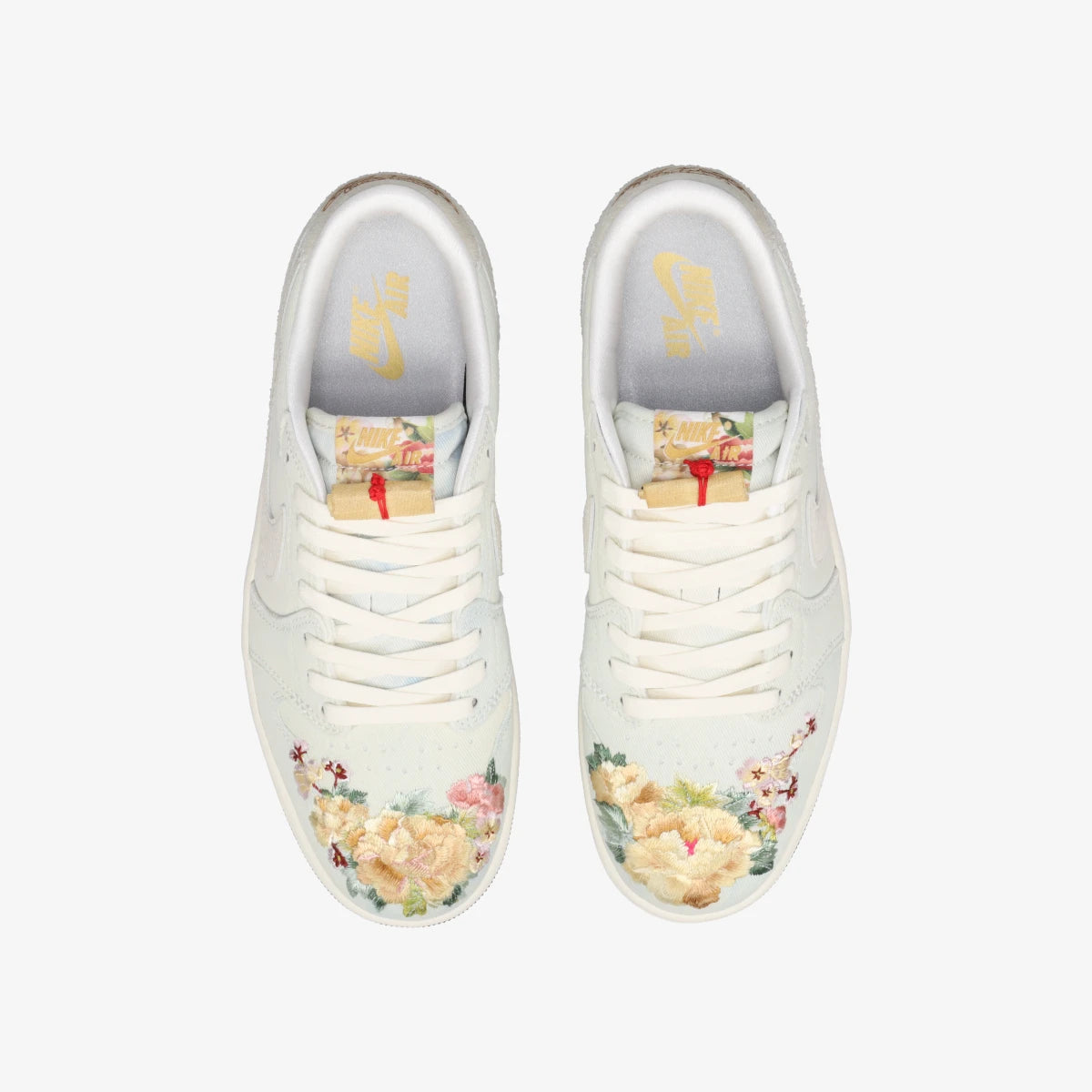 花柄の刺繍が施されたアッパーと、シュータンの装飾が特別なモデルということを物語ります。
