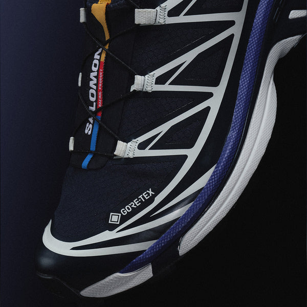 Salomonのトレイルの伝統を受け継ぎながら技術性が際立つ「XT-6 GORE-TEX」は、熱狂的なファンを持つスニーカーに進化しました。革新的なPFCフリーePEメンブレン、砂よけメッシュ構造、耐久性のあるクッション、距離に左右されない安定性が、都会の過酷な条件下でプロテクション性を発揮します。