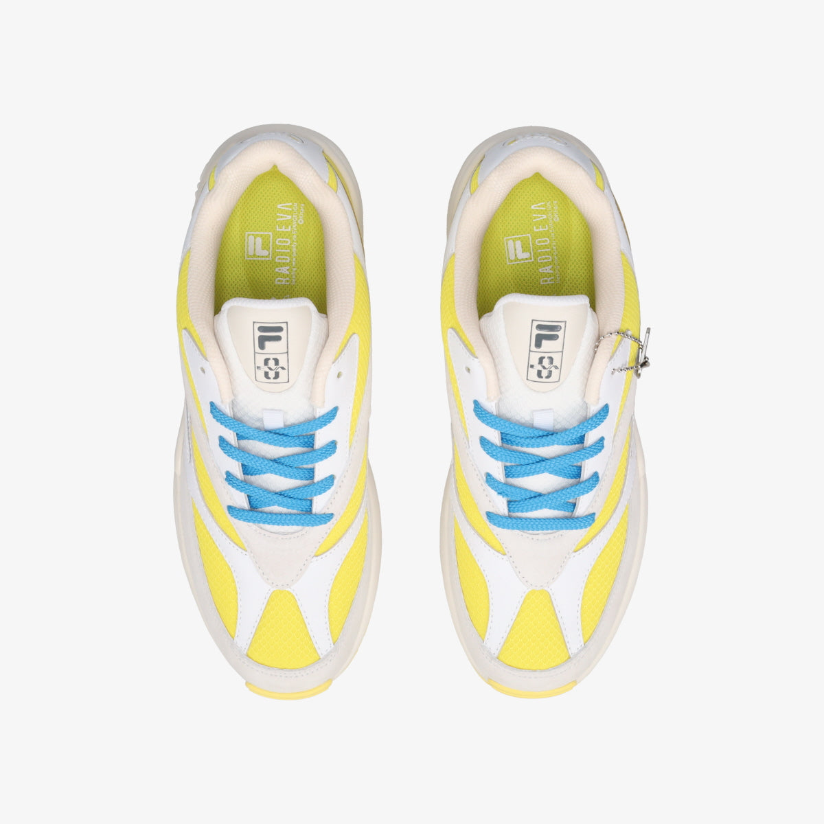 鋭利なパーツが重なり合うアッパーデザインや、ヒールのプラパーツロゴ等、90年代を象徴する要素が各所に見られるこの名作に、RADIO EVAがエヴァンゲリオンの世界観を落とし込んだ新たな名作がここに完成。