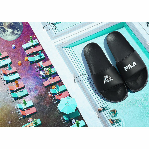 For the first collaboration by KICKS LAB. and FILA, we adopted FILA's popular sports sandal DRIFTER 96 as a base model. We boldly colored this model that widely fits a various scenes from leisure such as beach/poolside or outdoor to street scene, with "Black & White", the theme colors of KICKS LAB.. Original specifications unique to the collaboration model are reflected in the key points on the upper, such as print the standard font logo of FILA on the left foot, and the retro logo used in the 90's on the right foot.