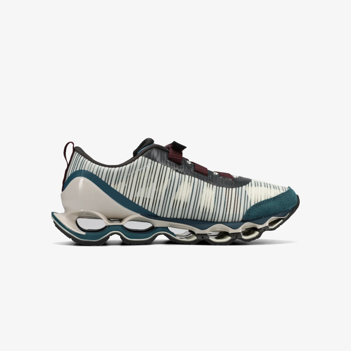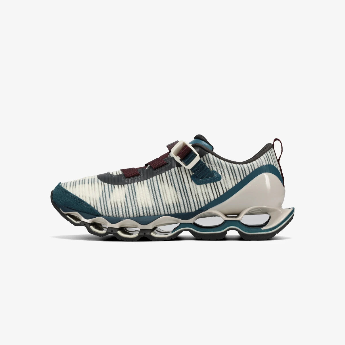 「WAVE PROPHECY STRAP 2」はスプリントスパイク由来のフィット理論や構造をベースに軽量で通気性のあるアッパーデザインで“機能美”をクリーンかつモードに表現したサマースニーカー。