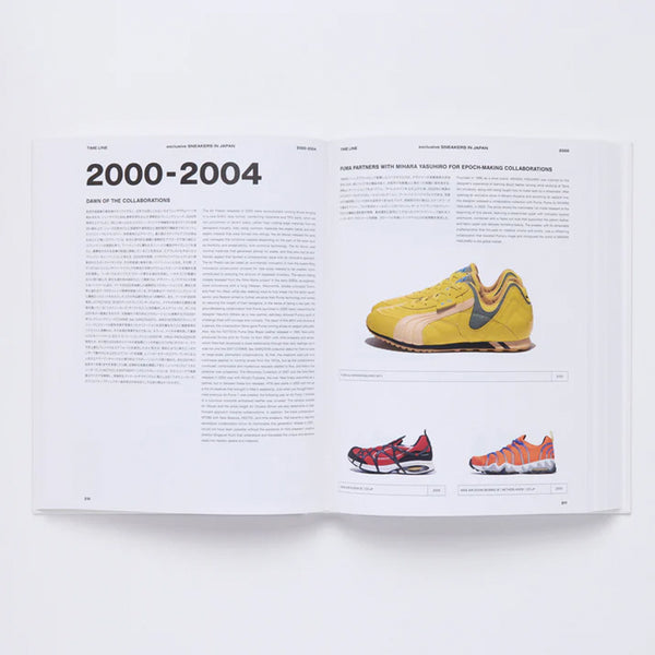 後半には1995年から2022年まで脈々と紡がれてきた日本ゆかりのスニーカー年表(タイムライン)を掲載し、要注目のトピックスと日本のスニーカーカルチャーを5年おきにテキストで俯瞰する。