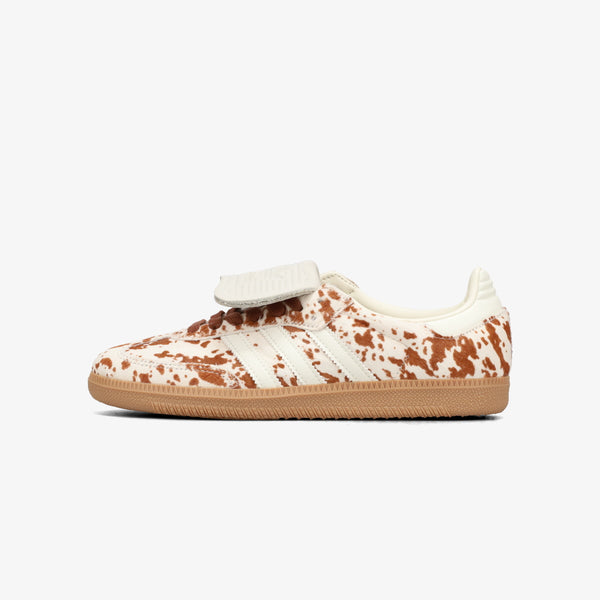サッカースパイクにインスピレーションを得たユニークなシュータンを備えたレザーのadidas サンバ シューズ。